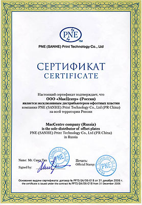 Китайская сторона продемонстрировала специалистам МакЦентра технологическую линию для нанесения эмульсии на алюминиевую ленту, участки резки, контроля качества, упаковки пластин, а так же логистические процедуры. «Нас очень интересовал опыт китайских типографий, работающих на пластинах PNE. Посетив одну из типографий мы убедились, что пластины вполне оправдывают возложенные на них ожидания. При нас на ротационной машине Solna на предварительно обоженных пластинах NP-1 печатался 130-тысячный тираж учебника истории. Тираж прошел без замечаний», говорит консультант по техническим вопросам компании «МакЦентр», Крысинский В. Б. Холдинг PNE является мощной многопрофильной структурой со штаб-квартирой в Сингапуре, которая помимо полиграфических материалов имеет заводы по производству печатных плат, электронных приборов, химических компонентов. В настоящее время современная автоматическая поточная линия производит в год 6,5 миллионов квадратных метров пластин, которые по своему качеству сопоставимы с европейскими. Это подтверждается наличием сертификата ISO 9001. Сейчас поступает оборудование для второй, более производительной линии, где планируется изготовление не только аналоговых, но и цифровых термальных пластин для CtP. Планируется также и увеличение производства химических реактивов для полиграфии. На сегодняшний день на складе компании «МакЦентр» имеется в наличии большое количество ходовых форматов пластин NP-1. Новые недорогие и качественные материалы из Китая обещают стать хорошей альтернативой для тех, кто хочет уменьшить себестоимость печатной продукции, при этом не потеряв в качестве.